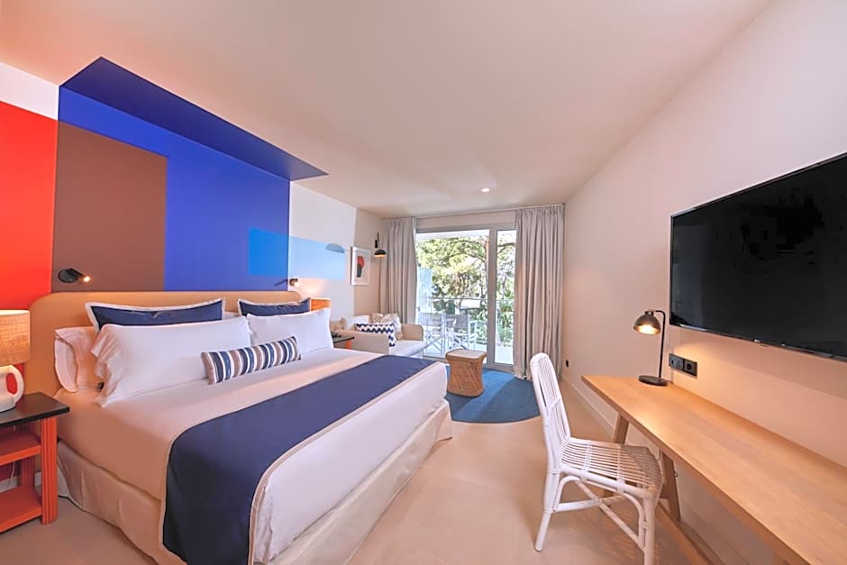 JUNIOR SUITE BALCONY 2 ADULTS + 2 CHILDREN is 344 square feet and includes a king-size bed 150-183 width plus a sofa bed plus balcony, desk, satellite tv , hairdryer, and safe and is Wheelchair-accessible.